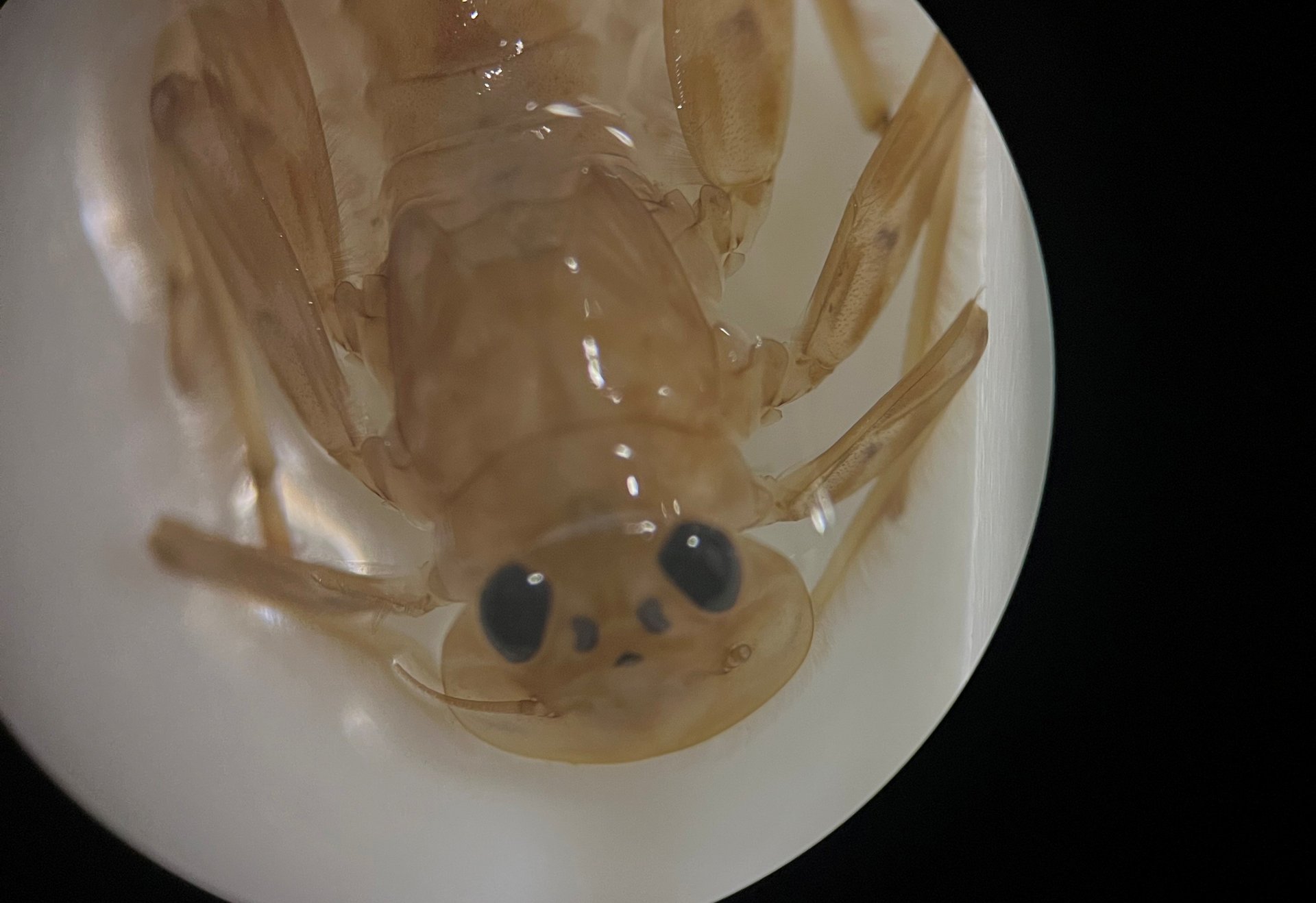 Wir platzieren die Petrischalen unter den Objektiven unserer Binokulare und beugen uns darüber. Ich betrachte jedes Tier und versuche, Merkmale, die ich registriere, mit Beschreibungen im FLOW-Bestimmungsheft zu vergleichen. Meist sehen sich die Tiere sehr ähnlich. Viel zu selten kann ich sie auf den ersten Blick voneinander unterscheiden. Durch die Vergrößerung des Binokulars erkenne ich die Tiere zwar gut, trotzdem fällt es mir schwer, sie zu bestimmen. Obwohl sich die Tiere nicht bewegen, verliere ich als Ungeübter schnell den Blick für das Wesentliche. Zu viele Details, zu viele Merkmale drängen in mein Blickfeld. Umso mehr freue ich mich über jedes Tier, das ich richtig benenne.